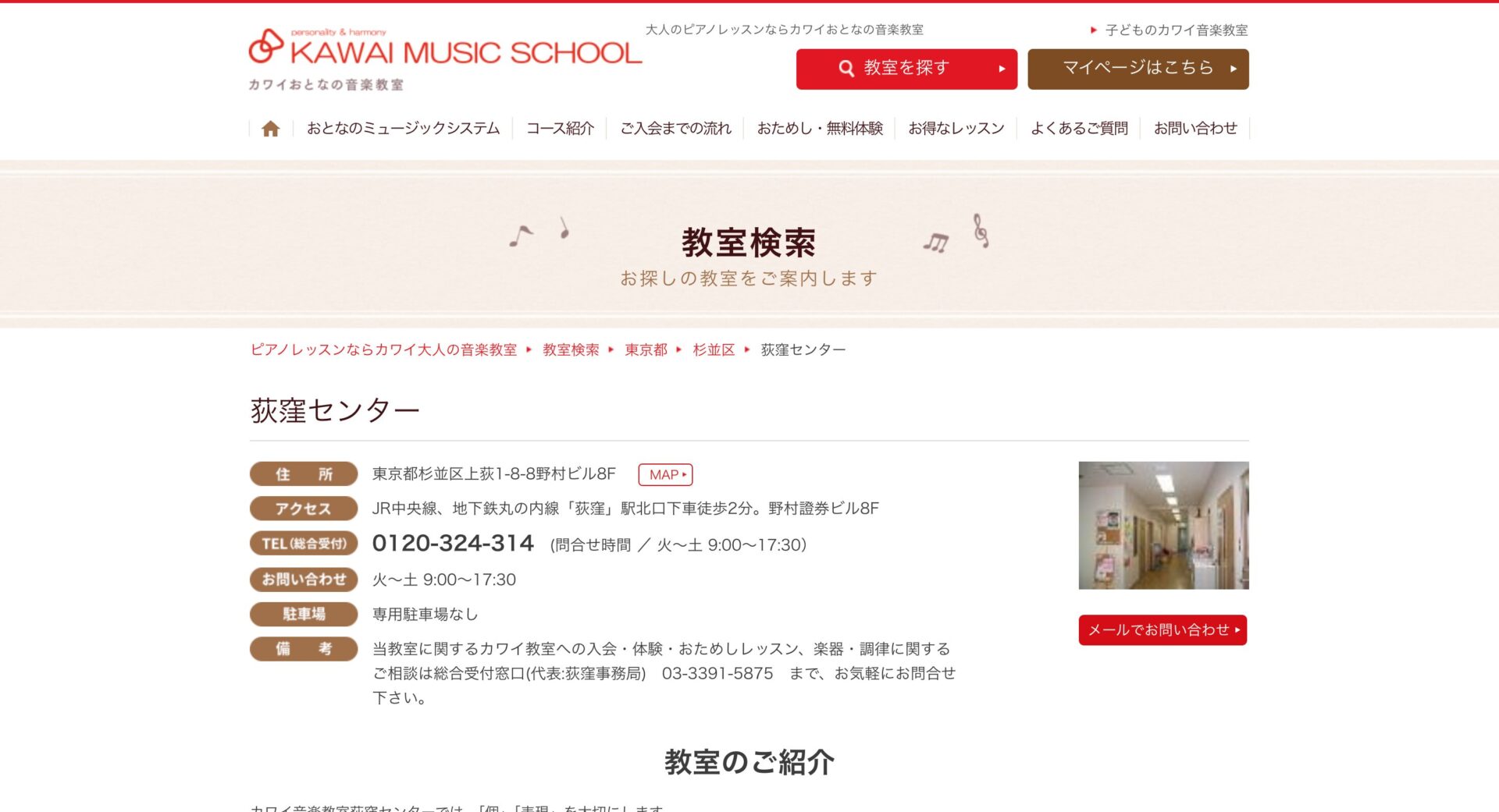 教室名 OKADA音楽教室 スガナミ楽器 浜田山センター ヤマハ音楽教室 ラメールピアノ教室 カワイ音楽教室 荻窪センター